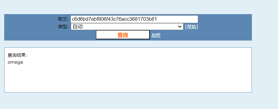 得到了用户和密码,密码看上去是base64加密,我们解密后得到c6d6bd7ebf806f43c76acc3681703b81,因为是32位,而且base64不应该拿来当密码,猜测是MD5,解密一下,