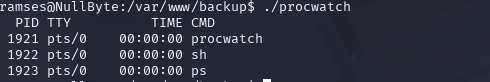 没有看到类似于find,vim,bash这种,有一个比较特殊的/var/www/backup/procwatch,cd 看看