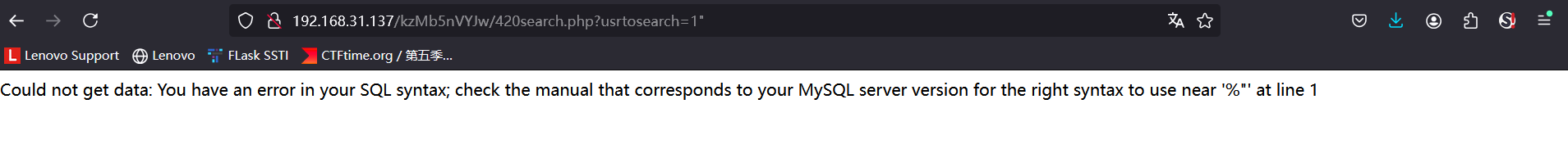 http://192.168.31.137/kzMb5nVYJw/420search.php?usrtosearch=root这样的url就很有可能存在sql注入